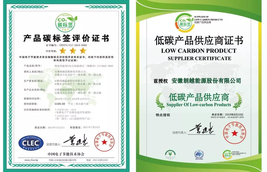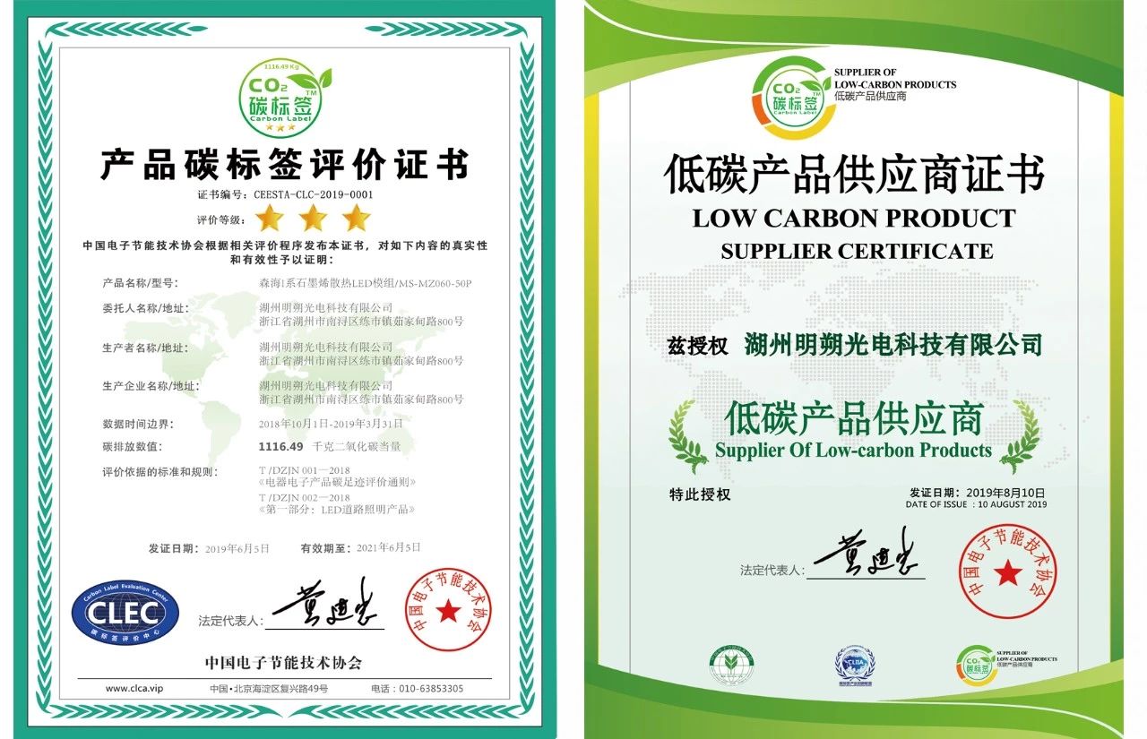 恭喜湖州明朔光電科技有限公司和安徽朗越能源股份有限公司獲頒“中國產(chǎn)品碳標(biāo)簽評價證書”和“低碳產(chǎn)品供應(yīng)商證書”